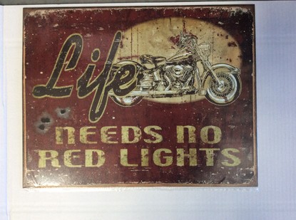 Life Needs No Red Lights sign.