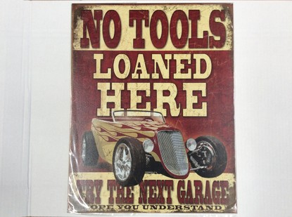 No Tools Loaned sign.