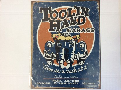 Tool'in Hand Garage sign.